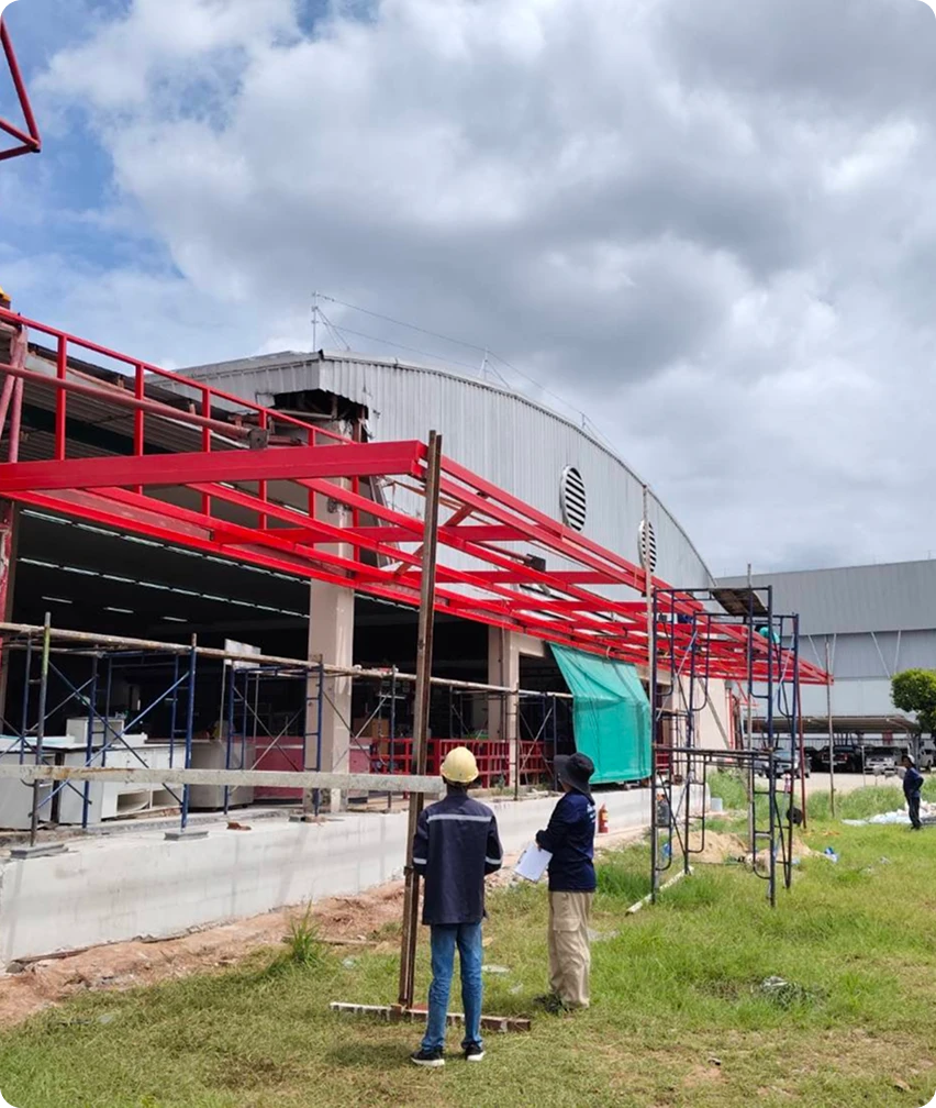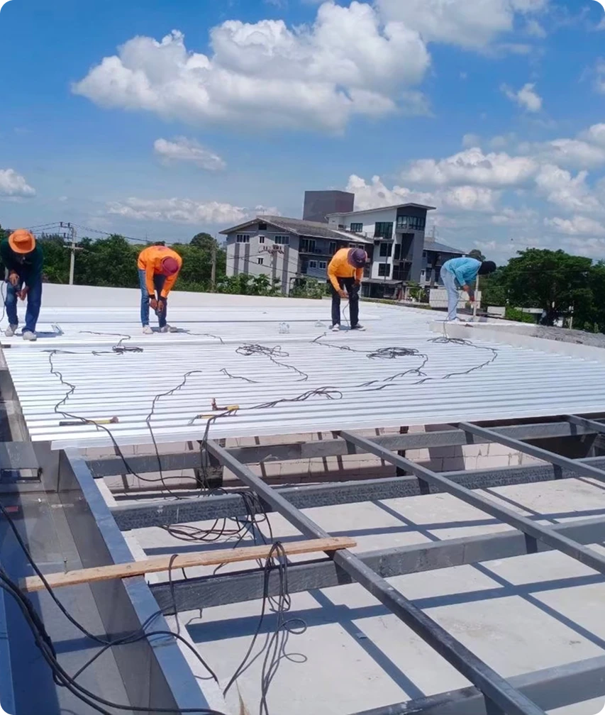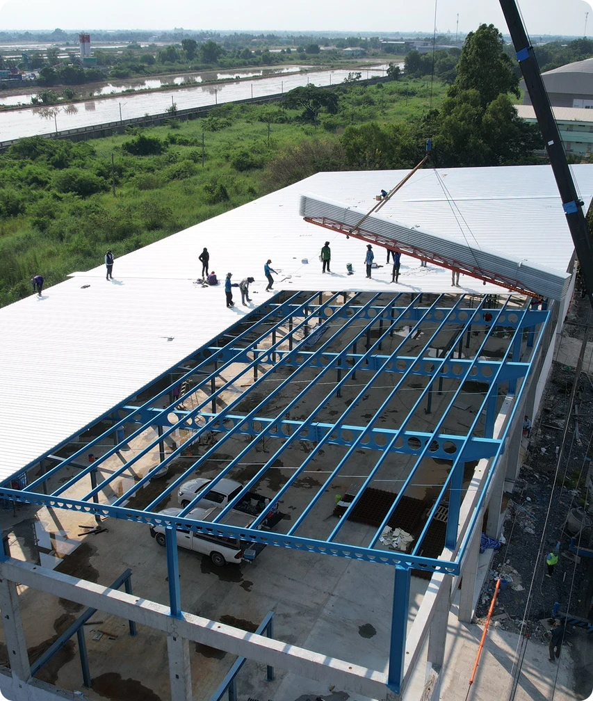 บริการของเราครอบคลุมตั้งแต่การออกแบบ ผลิต จัดส่ง และติดตั้งหลังคาโรงงานอุตสาหกรรม